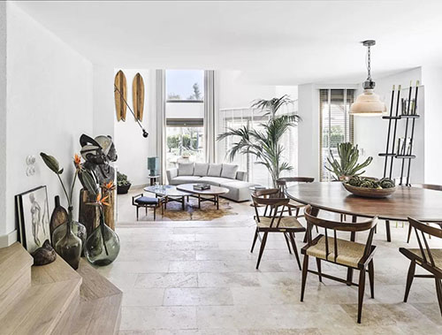 我们通常用时髦、质感、时尚去形容一个人,可如今设计师们将这些词汇全部发挥在室内设计中,选择造型简约、线条利落的家具,同时大量使用木质元素,通过自然的纹理、装饰画或艺术品的点缀,将屋主的审美与生活方式得到展现。